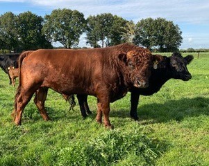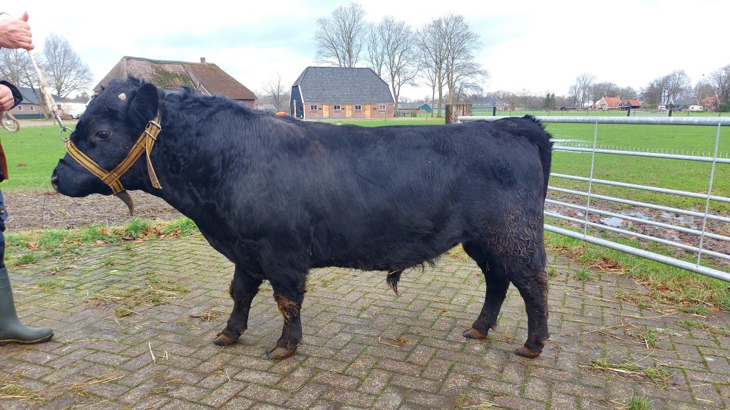 De Smodde Koen Polled. De stier is van juni 2019, gekeurd met 88 punten en polled. Het is een kleine hoogbenige (106 cm op 2,5 jaar leeftijd) hij is een rustige groeier en blijft klein. Getest vrij van bulldogfactor en PHA. IBR en Lepto VRIJ.