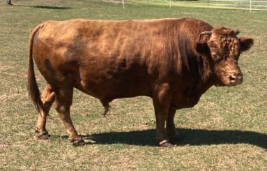 Sugar Elmo. Hoogbenige rode stier, IBR en Lepto vrij. Gemakkelijke stier in de omgang en bevrucht goed.